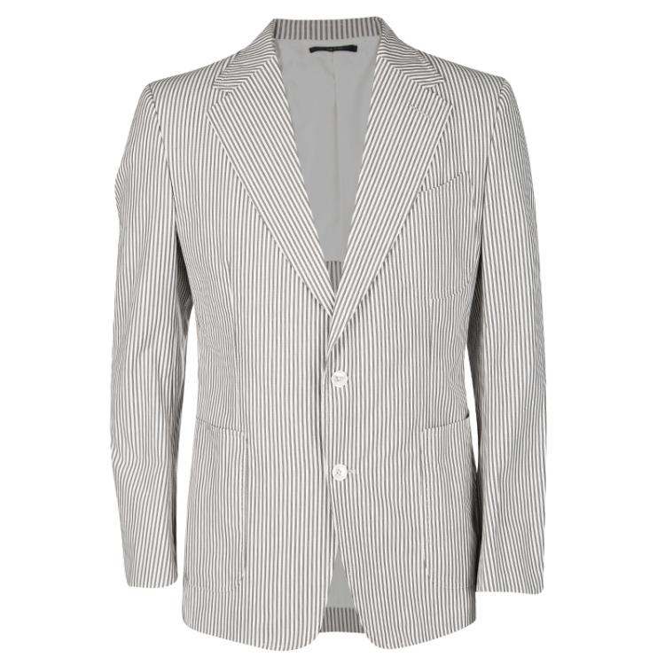 Pre Owned Tom Ford Brown and White Striped Cotton Basic Base Blazer XL