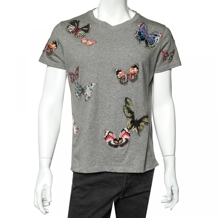 Valentino Grey Cotton Butterfly Patch Detail Crewneck T-Shirt S