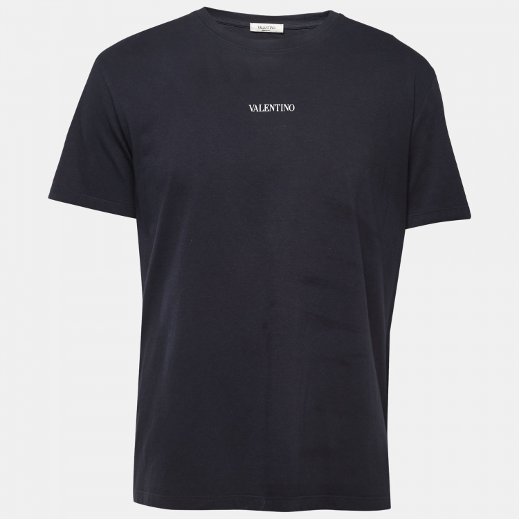 Valentino Navy Blue Logo Print Cotton Crew Neck Half Sleeve T-Shirt L