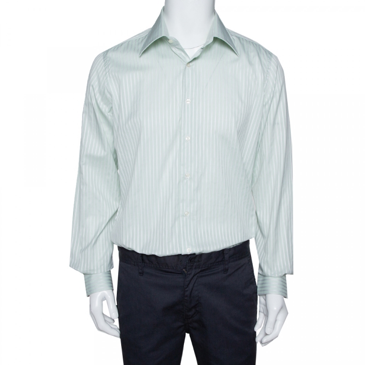 Valentino Pale Green Striped Cotton Long Sleeve Shirt XXL