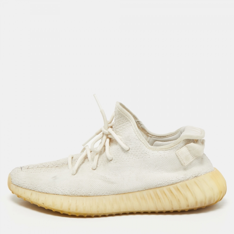 Pre Owned Yeezy x Adidas White Knit Fabric Boost 350 V2 Triple White Sneakers Size 44