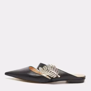 Nicholas Kirkwood Black Leather and Suede Slingback Flats Size 40