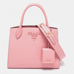 Prada Pink Saffiano Cuir Leather Small Monochrome Tote