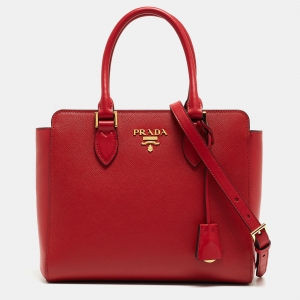 Prada Red Saffiano Lux and Soft Leather Small Tote