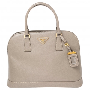 Prada Taupe Saffiano Lux Leather Medium Double Zip Tote