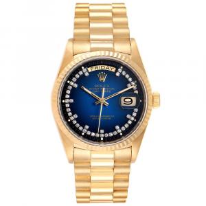 Rolex Blue Diamonds 18K Yellow Gold President Day-Date 18038 Men's Wristwatch 36 MM