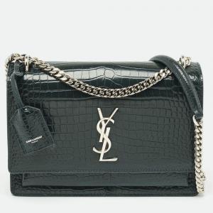 Saint Laurent Green Croc Embossed Leather Medium Sunset Shoulder Bag