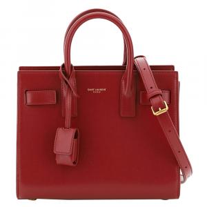 Saint Laurent Red Leather Nano Sac de Jour Bag