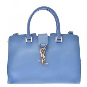 Saint Laurent Paris Light Blue Leather Small Cabas Chyc Satchel