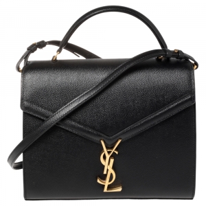 Saint Laurent Black Leather Medium Cassandra Top Handle Bag
