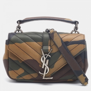 Saint Laurent Multicolor Camouflage Print Leather Mini College Top Handle Bag