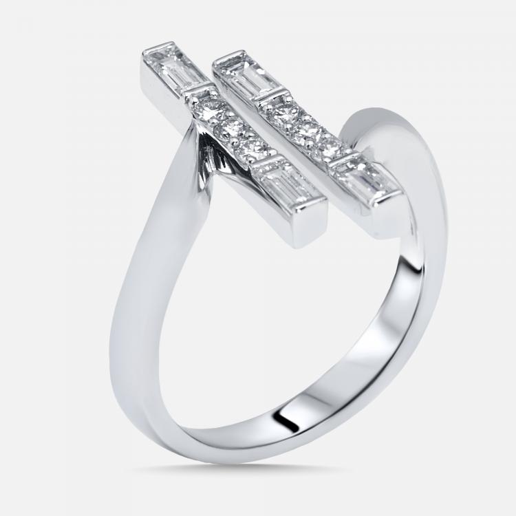 Pre Owned 0.66 cts Round, Emerald cut Lab Grown Diamonds 18k White Gold Ring Size 52