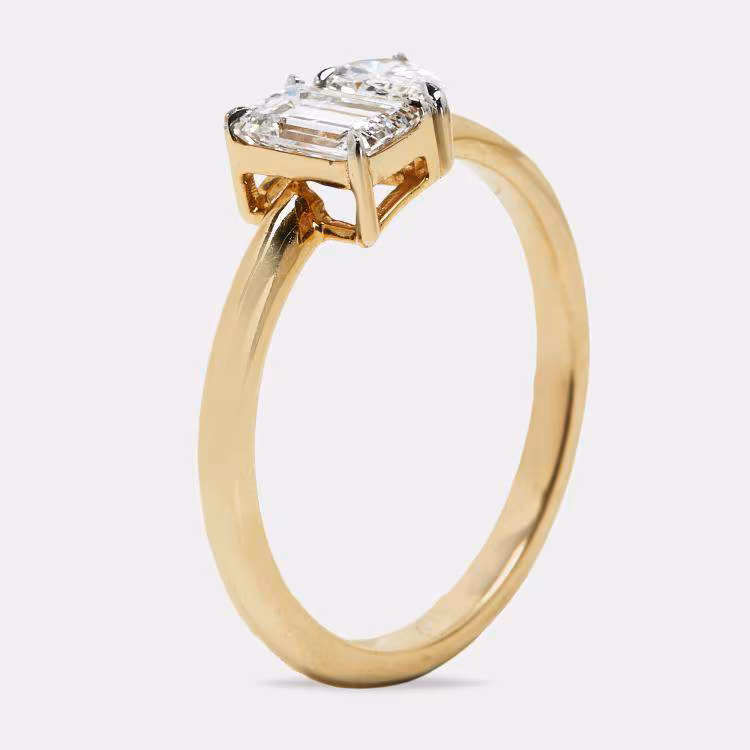 1.00 cts Emerald Cut and Pear Lab Grown Diamond 18k Yellow Gold Ring Size 55