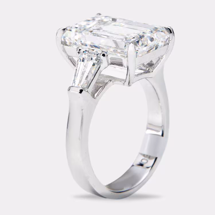 10.00 cts Emerald Cut and Trapezoid Lab Grown Diamond 18k White Gold Ring Size 54