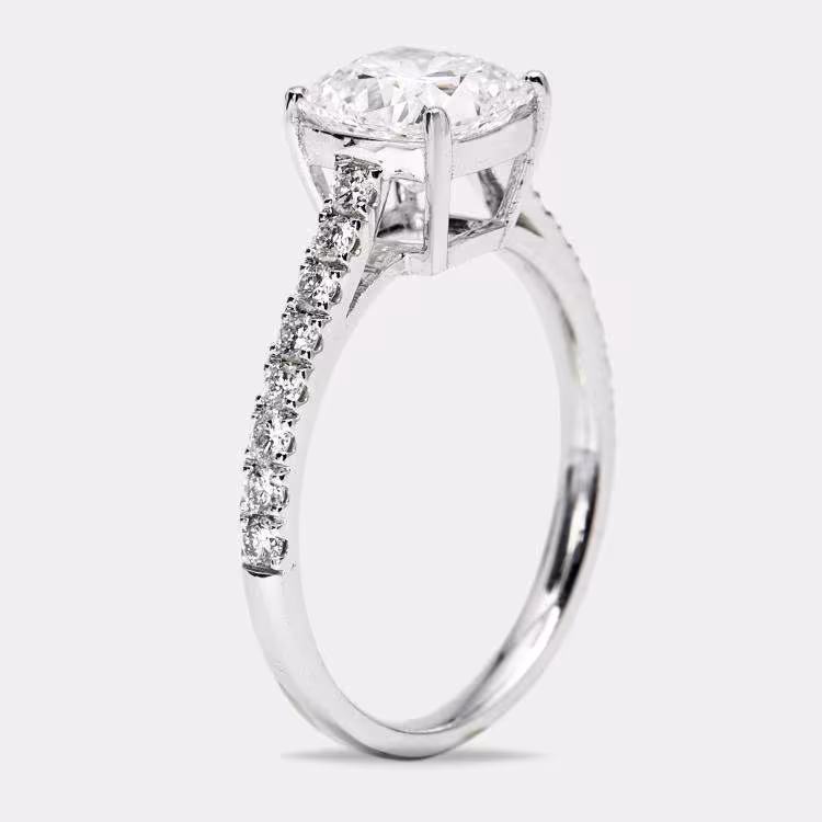 Pre Owned 1.85 cts Cushion Cut and Round Lab Grown Diamond 18k White Gold Rings Size 52