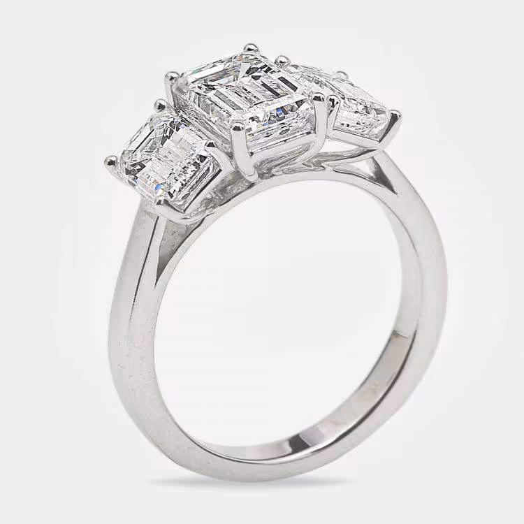 4.00 cts Emerald Cut 18k White Gold Lab Grown Diamonds Ring Size 54