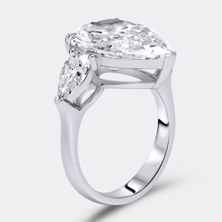 7.7 cts Pear Brilliant Lab Grown Diamond 18k White Gold Ring Size 53