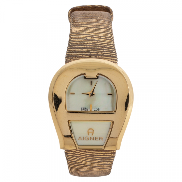 Leather, Yellow Gold Plated Stainless Steel