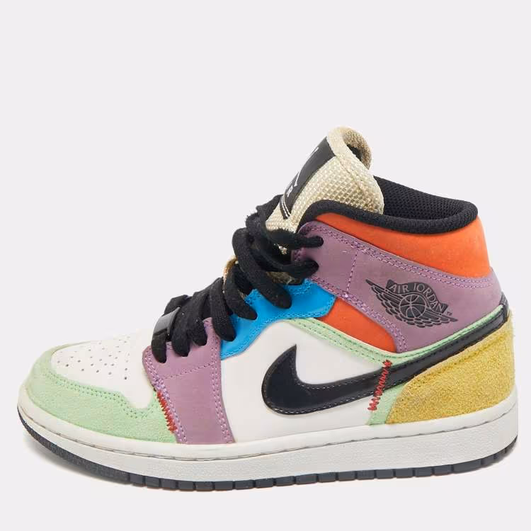 Air Jordan Multicolor Leather and Suede Jordan 1 Mid SE Lightblub Sneakers Size 36