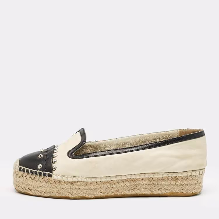 Alexander McQueen Beige/Black Leather Studded Espadrille Flats Size 37