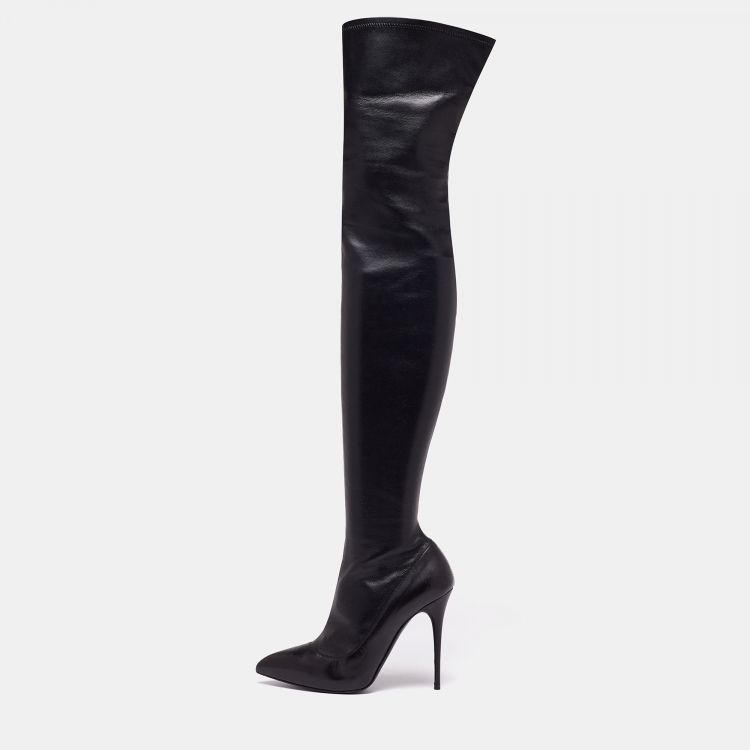 Pre Owned Alexander McQueen Black Leather Over The Knee Boots Size 37