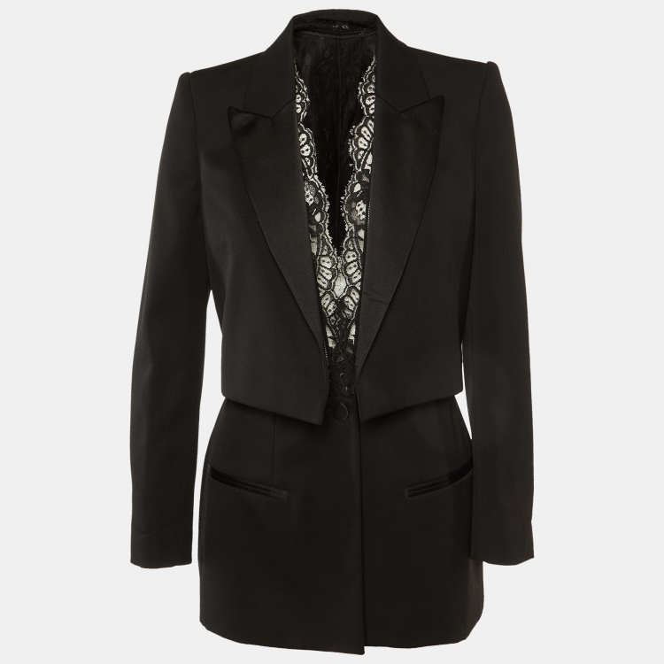 Pre Owned Alexander McQueen Black Wool & Lace Inset Cocktail Blazer M