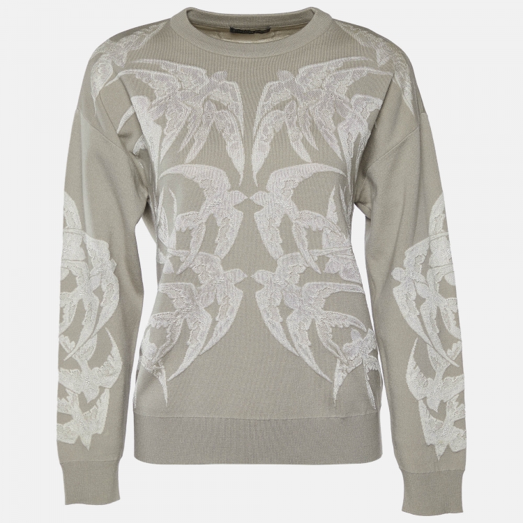 Alexander McQueen Grey Swallow Jacquard Wool & Silk Jumper S