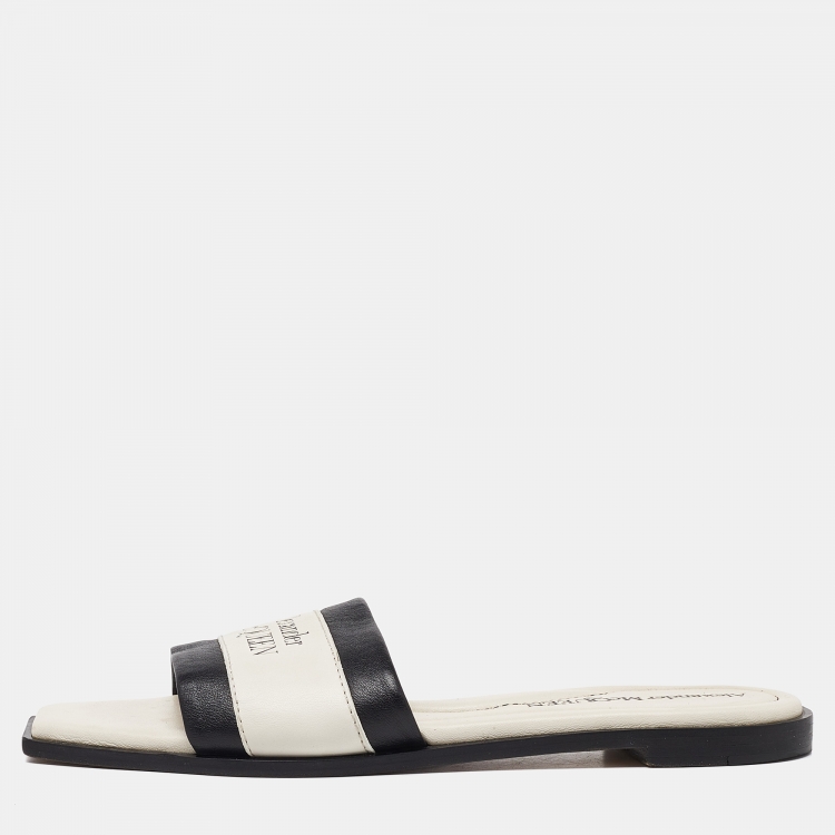Alexander McQueen Ivory/Black Leather Flat Slides Size 37