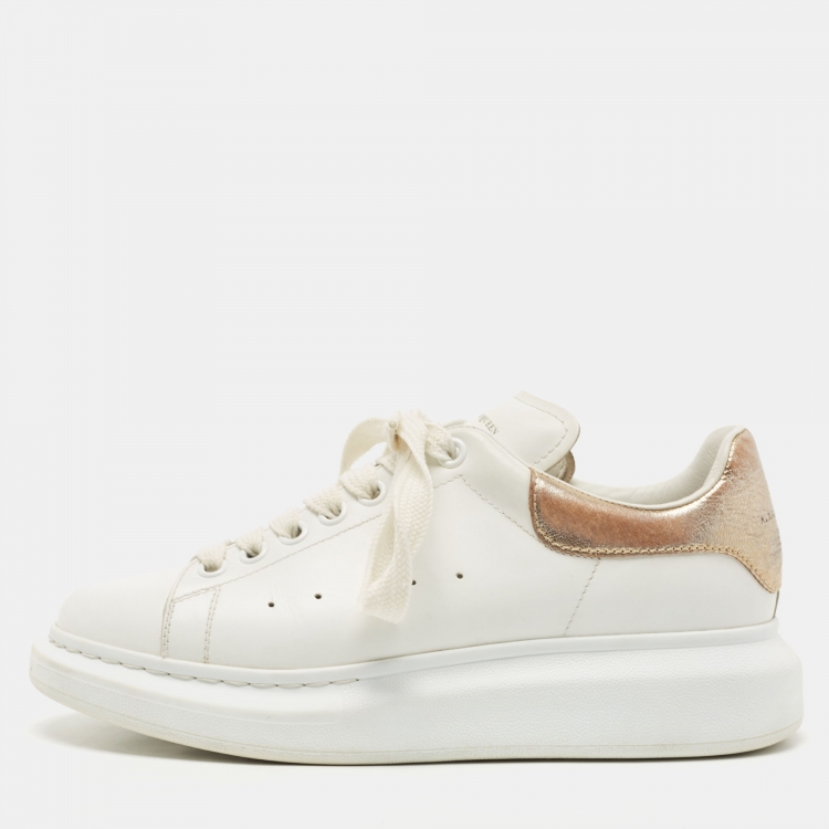 Alexander McQueen White/Gold Leather Oversized Sneakers Size 40