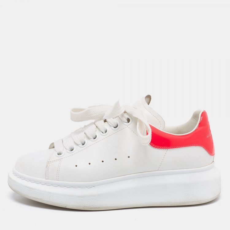 Pre Owned Alexander McQueen White/Hot Pink Leather Oversized Sneakers Size 35.5