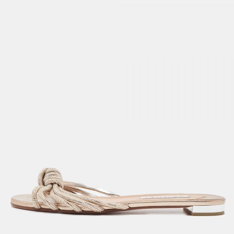 Pre Owned Aquazzura Beige Suede Crystal Slide Flats Size 38.5