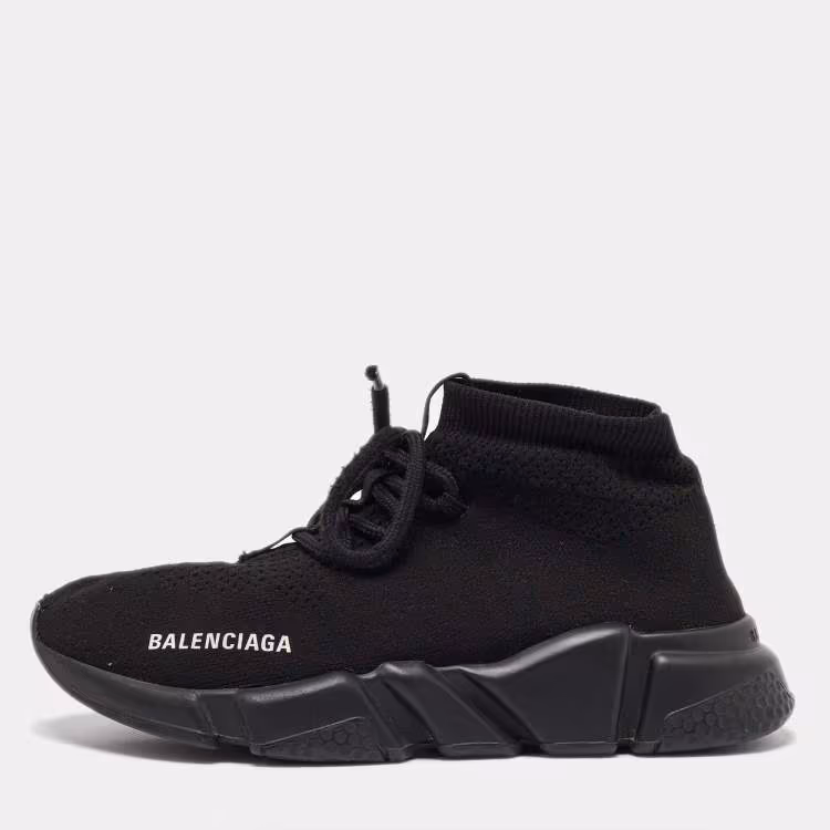 Balenciaga Black Knit Fabric Speed 2.0 Lace up Sneakers Size 37