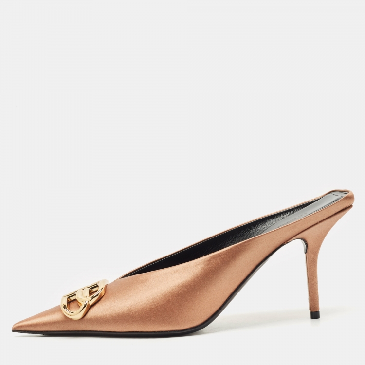 مملوكة مسبقًا Balenciaga Gold Satin BB Knife Pointed Toe Mules Size 39