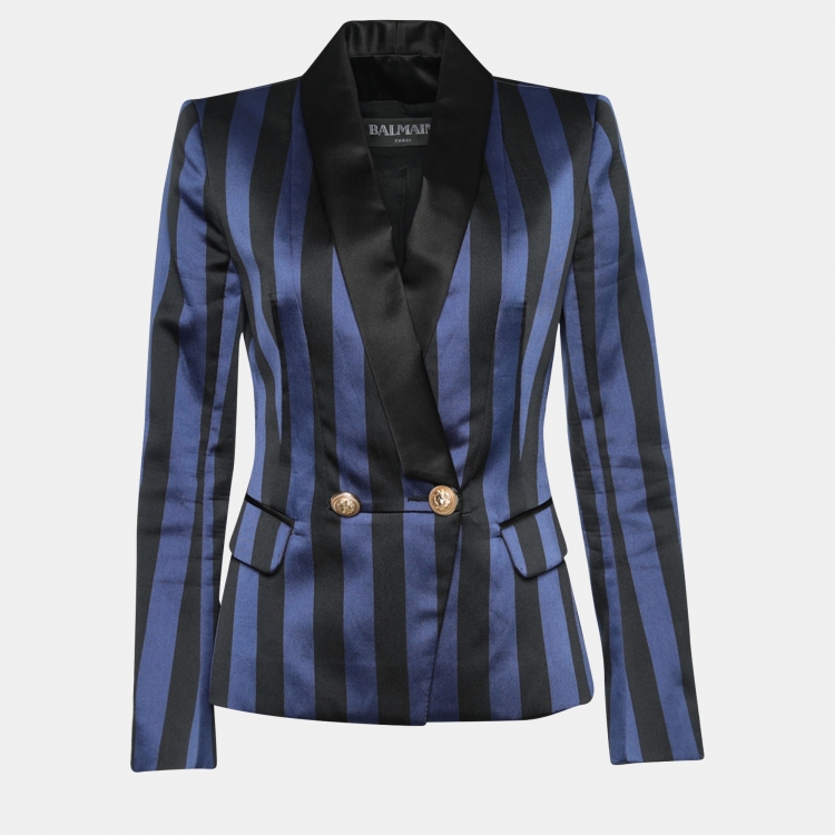 Pre Owned Balmain Blue & Black Striped Satin Blazer M