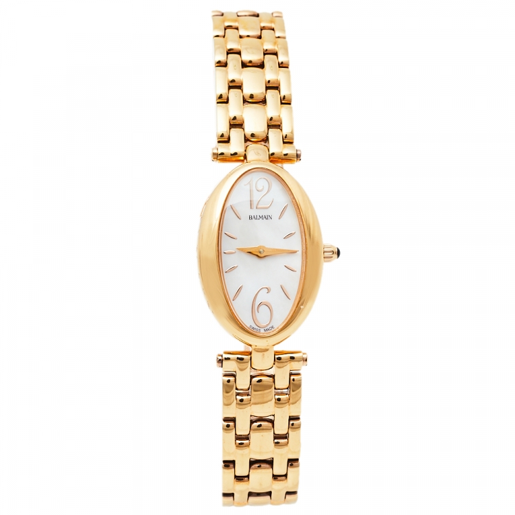 Pre Owned Balmain Mother Of Pearl Rose Gold Tone Stainless Steel B3259.3384 Women's Wristwatch 19 mm