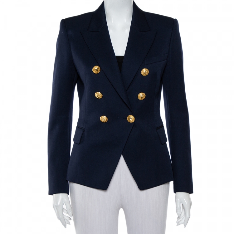 Pre Owned Balmain Navy Blue Wool Button Detail Double Breasted Blazer M