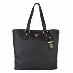 Prada Black Vitello Daino Leather Shopping Tote