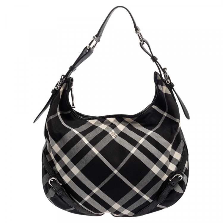 Burberry Black Check Canvas and Leather Large Larkin Hobo