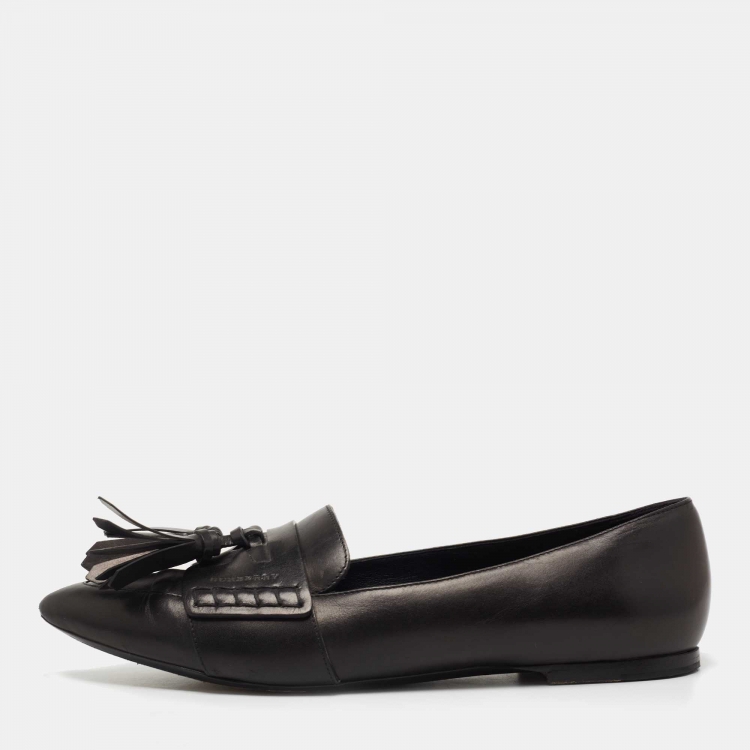 Pre Owned Burberry Black Leather Coledale Tassel Pointed Toe Loafers Size 39