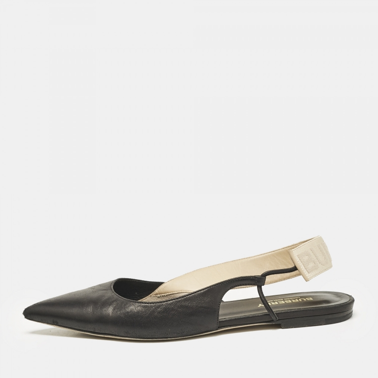 Burberry Black Leather Maria Logo Slingback Flats Size 37