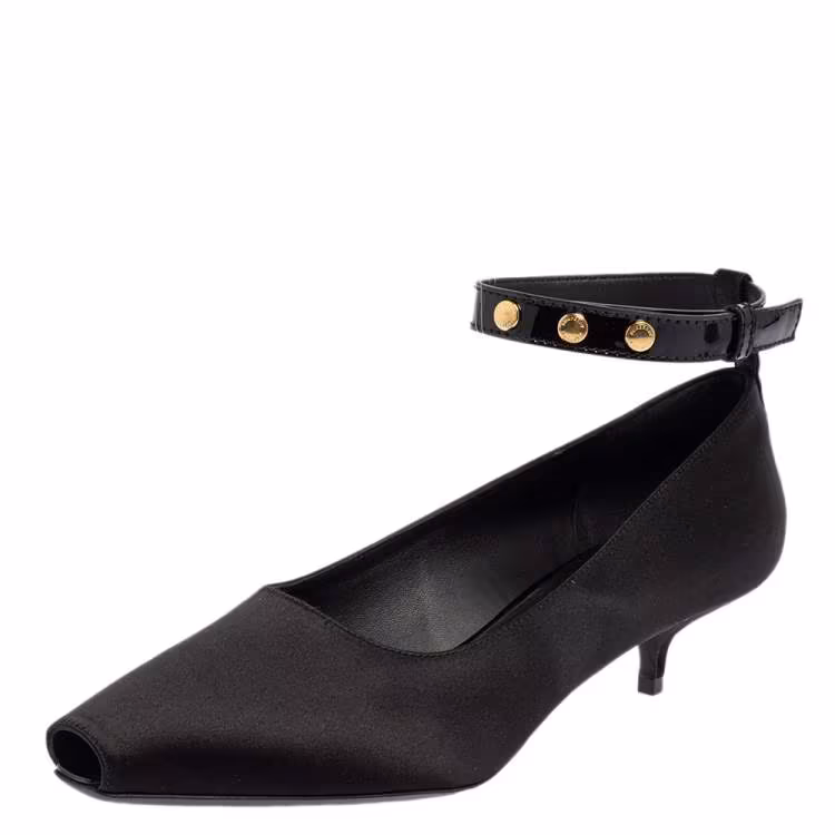 Burberry Black Satin Peep Toe Ankle Strap Pumps Size 37.5
