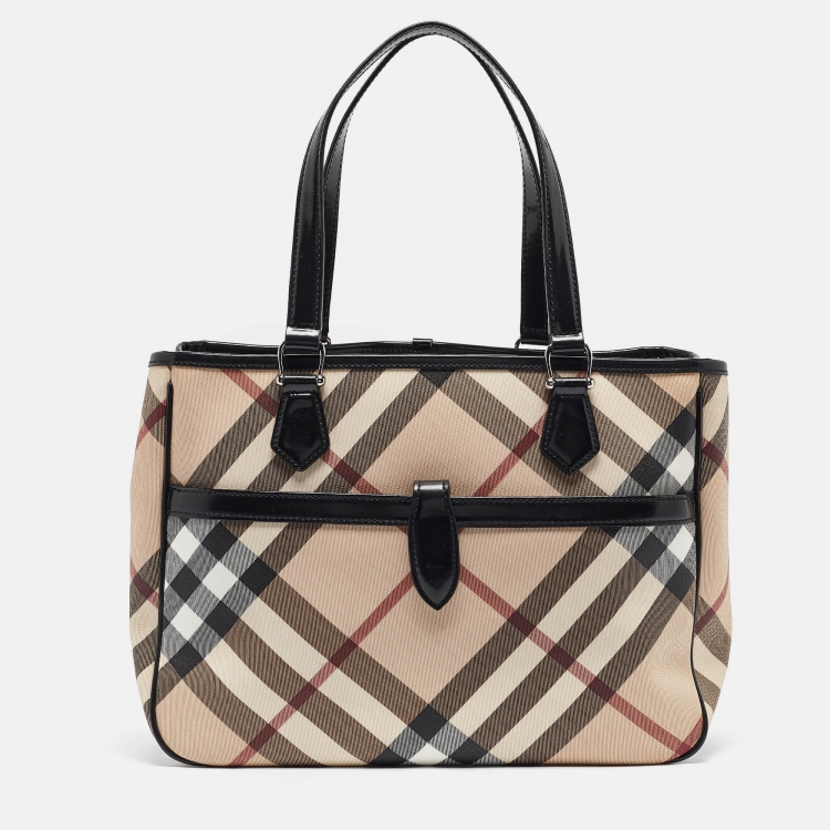 Burberry Black/Beige Super Nova Check Vinyl and Patent Leather Tote