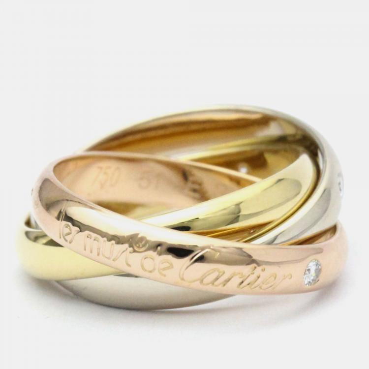 Pre Owned Cartier Trinity 18K Yellow Rose White Gold and Diamond Ring EU 51