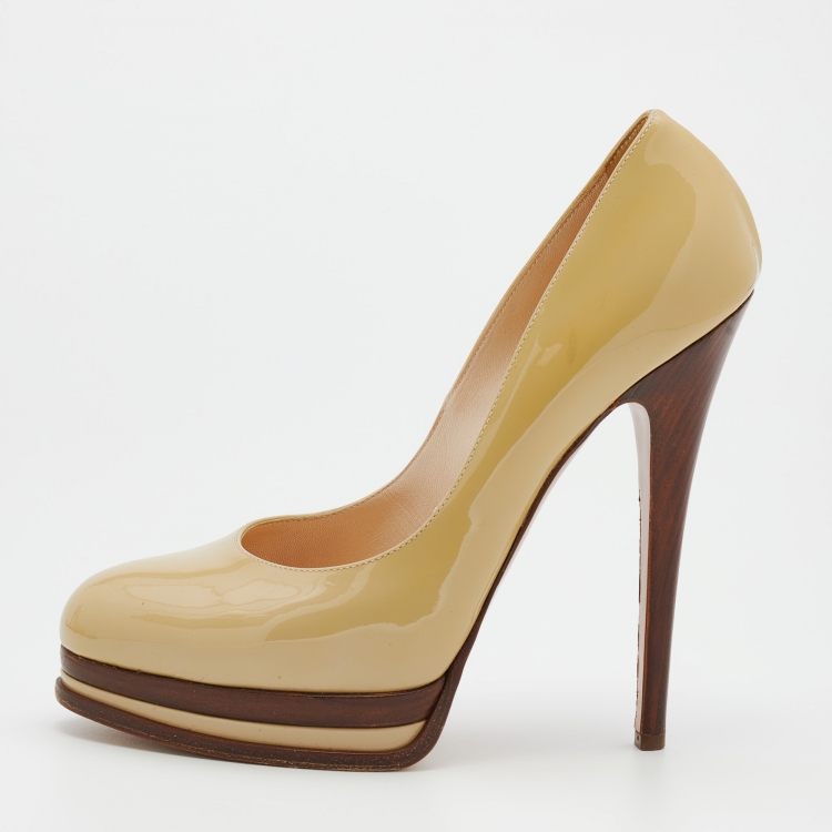 Pre Owned Casadei Beige Patent Leather Platform Pumps Size 39