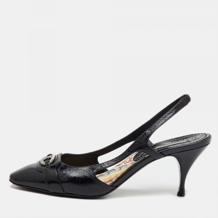 Celine Black Leather Logo Slingback Pumps Size 37.5