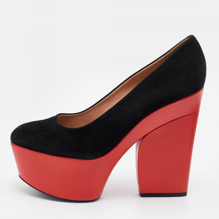 Pre Owned Celine Black Suede Color Block Platform Pumps Size 41