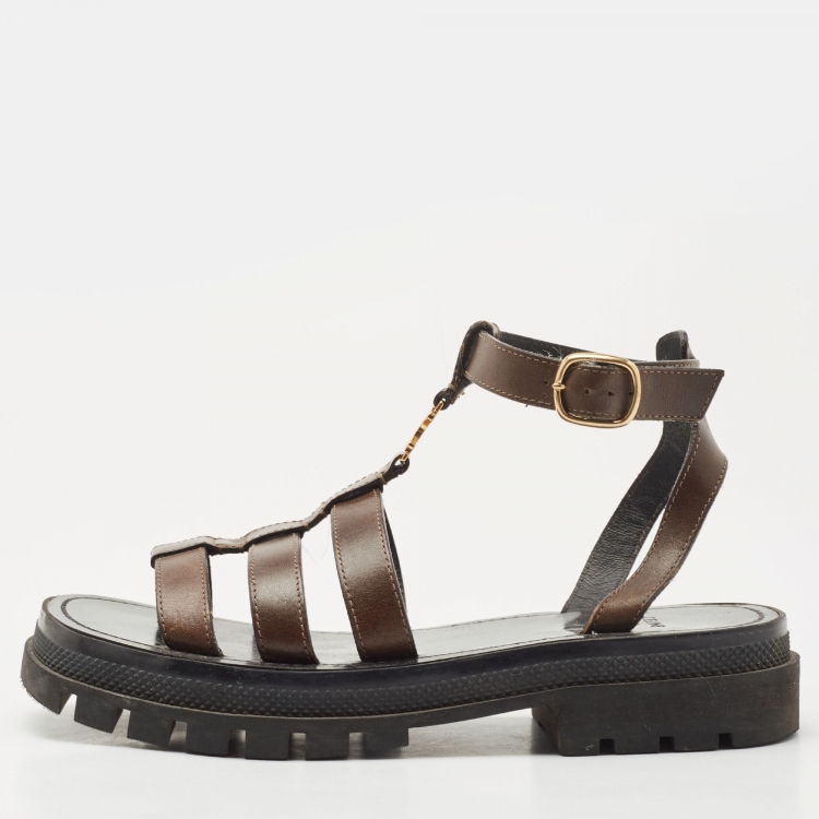 Celine Brown Leather Clea Slingback Sandals Size 39