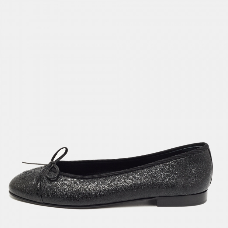 مملوكة مسبقًا Chanel Black Leather CC Bow Ballet Flats Size 38