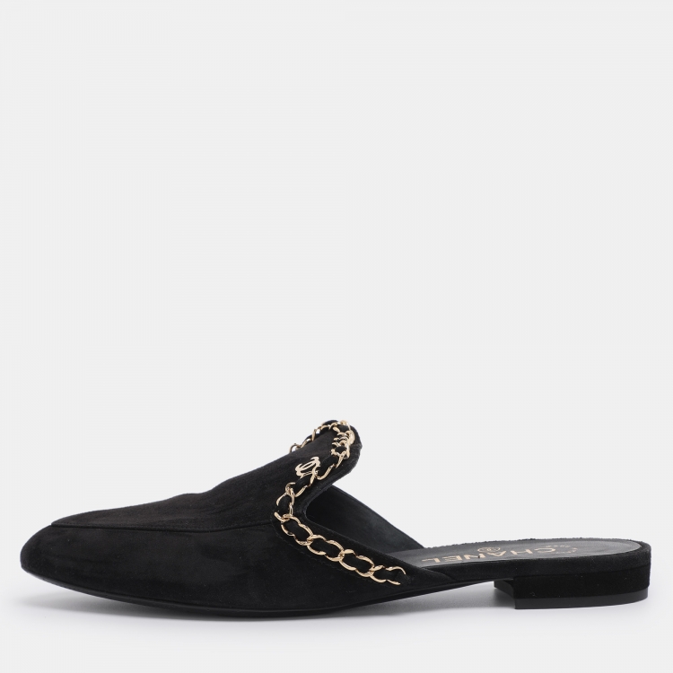 Pre Owned Chanel Black Suede CC Chain Mules Size 38.5