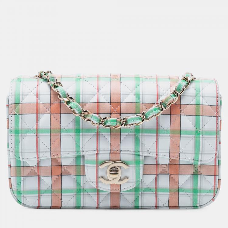 Chanel Green Mini Rectangular Classic Printed Calfskin Single Flap